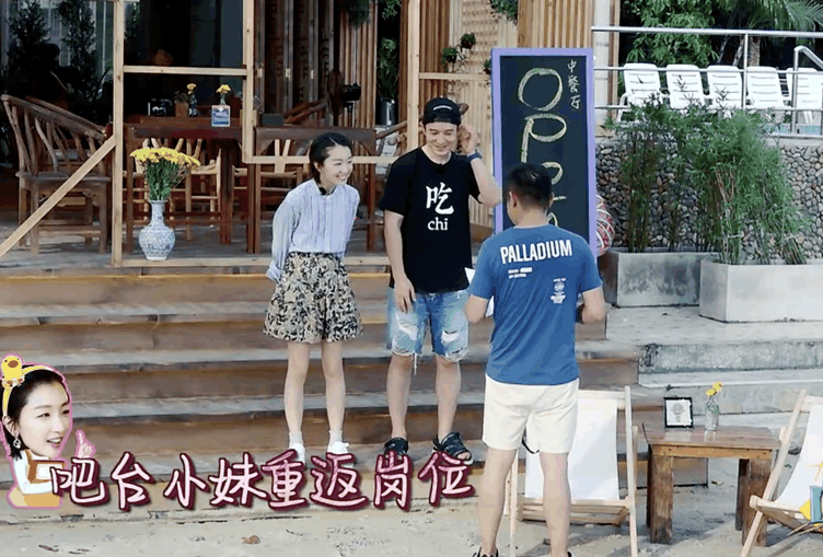 在莫名其妙的不知道该干什么的时候,黄晓明还是站出来了跟周冬雨说“不管有什么事情,客人来了要先招呼客人”,其实可以看出来黄晓明虽然知道这只是一档综艺但还是挺认真的在营业的,所以这样说似乎没什么问题。
