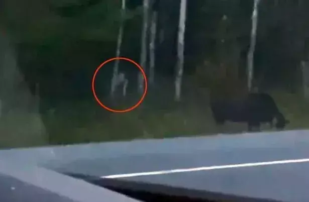 网传视频显示,一个氢气球在空中飘动,下方是茂密的森林。地面上有人表示,“氢气球上面有人。”